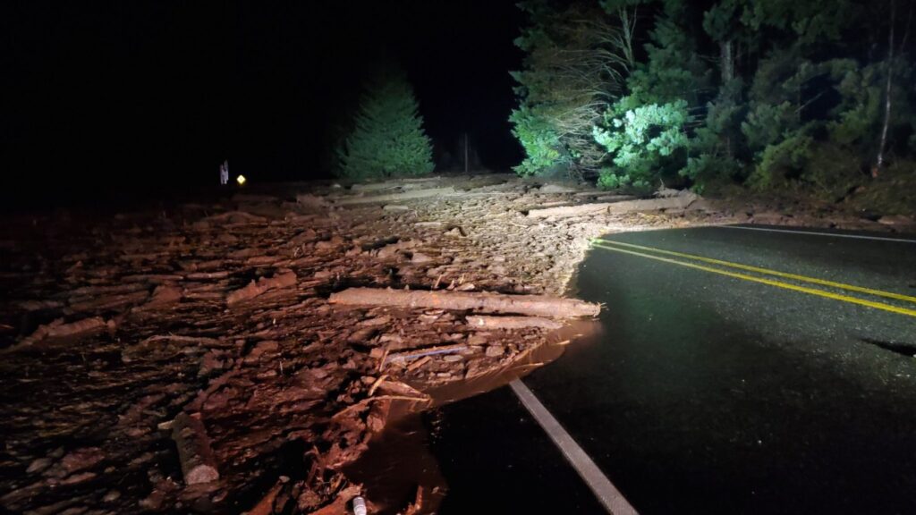 来自俄勒冈州交通部,俄勒冈州警察局和摩特诺玛县的急救人员正在现场寻找可能被卡在泥石流中的人。