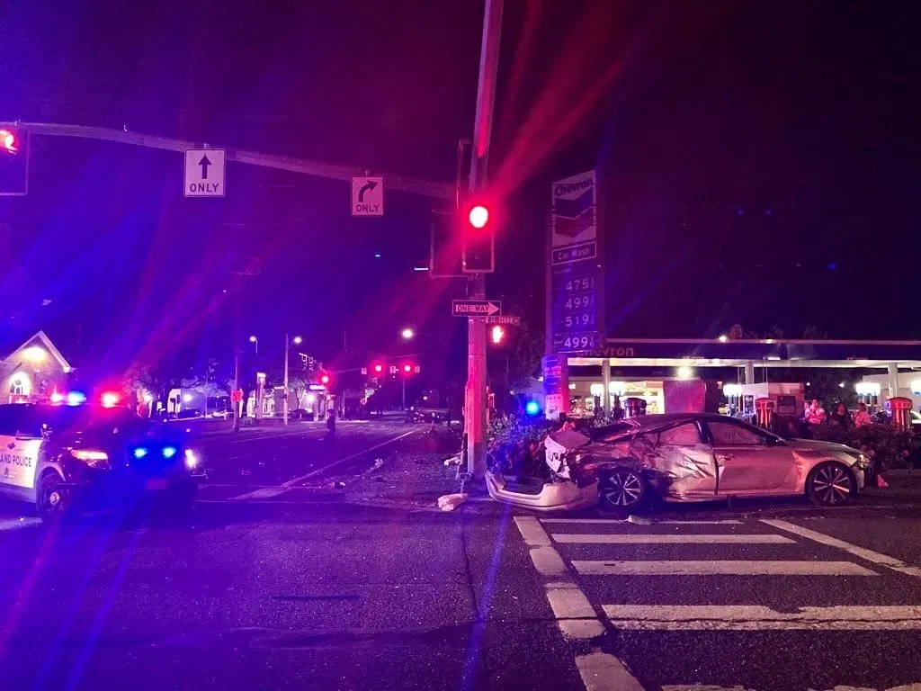 波特兰警察局说,当天晚上10点20分左右,赶到东南102大道夹华盛顿街时,两辆失事的汽车严重毁形,一辆汽车侧翻。