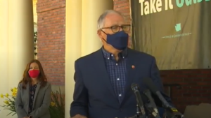 4月15日星期四,华盛顿州州长英斯利举行新闻发布会,鼓励人们将病毒“带到外面”。