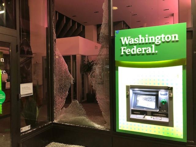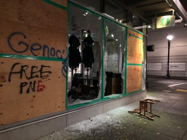 波特兰警察局称,包括银行、商店、咖啡店等至少35间企业在昨晚的动乱中遭殃。