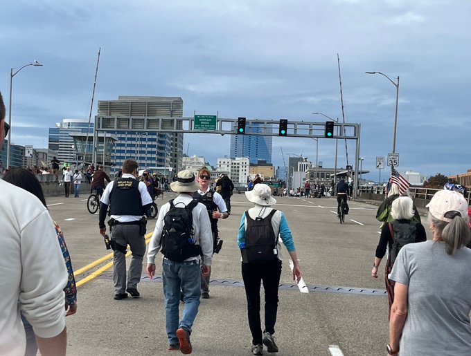 警方上午11点20分警告市民交通将严重受阻,12点20分关闭Morrison大桥,1点再关闭Hawthorne大桥。