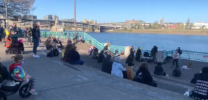 波特兰市中心举行“守夜活动”,抗议者集结中,目前不清楚波特兰是否会有过激行为发生。