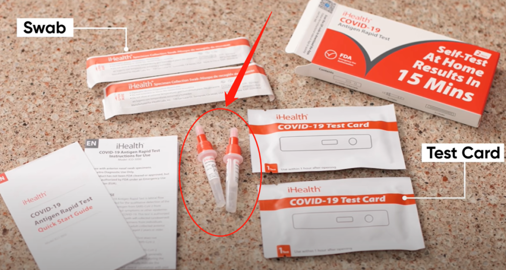 新冠检测盒除了鼻拭子和显色仪之外,还有一个装有小量液体的容器。