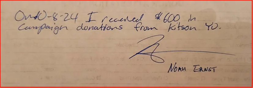 向波特兰市议会第1选区议员候选人诺亚·恩斯特(Noah Ernst)捐款600美元。