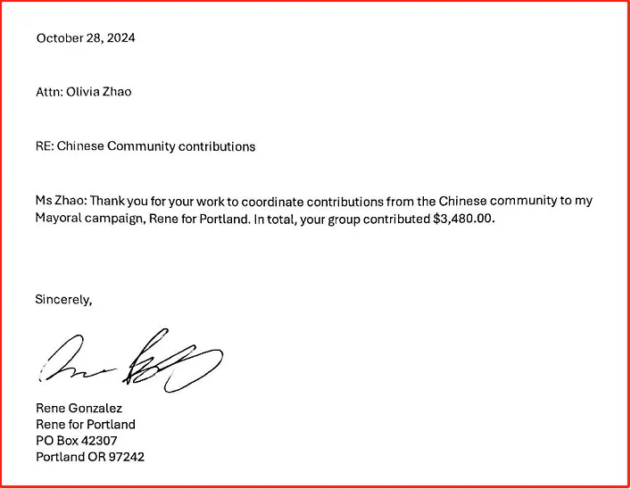 - 向波特兰市长候选人雷内·冈萨雷斯(Rene Gonzalez)捐款3480美元;