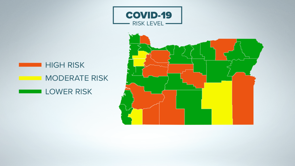 6月8日星期二,俄勒冈州州长办公室更新了各县的疫情风险级别。21个县是低风险,4个县是中度风险,11个县是高风险。相对上一次的评级,变化不大。