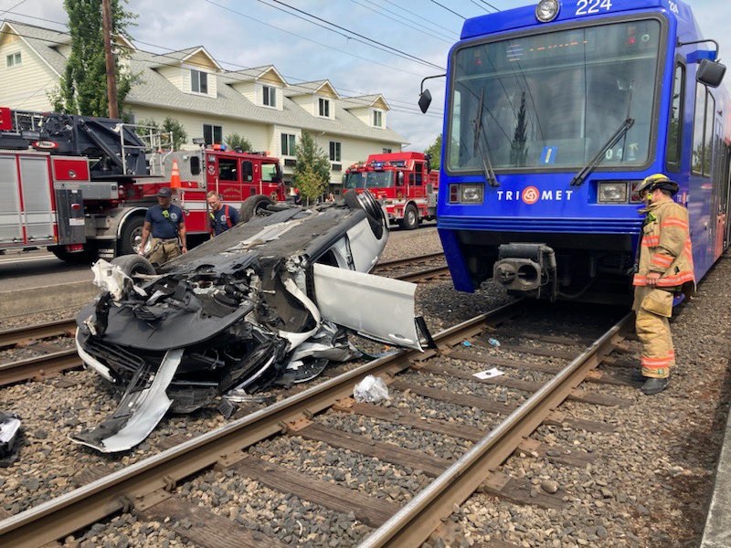 7月21日,波特兰消防局报告 ,下午3点左右,波特兰东北区一辆汽车与一辆 MAX 列车相撞,一名司机重伤。