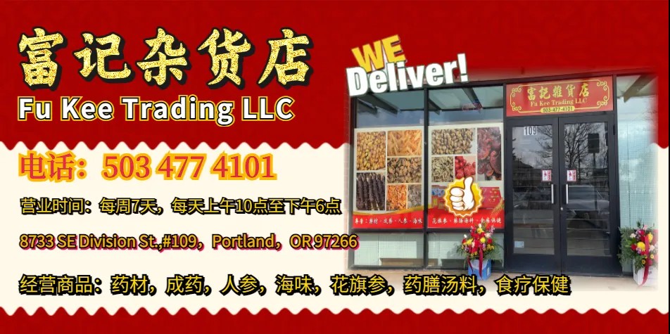 推荐好店 富记杂货店 Fu Kee Trading LLC | 电话:503-477-4101 by Malldone2025年1月11日2025年10月11日 富记杂货店 Fu Kee Trading LLC 电话:503-477-4101 营业时间:每周7天,每天上午10点至下午6点 8733 SE Division St, #109, Portland, OR 97266 经营商品:药材、成药、人参、海味、花旗参、药膳汤料、食疗保健 WE Deliver! ShareShare