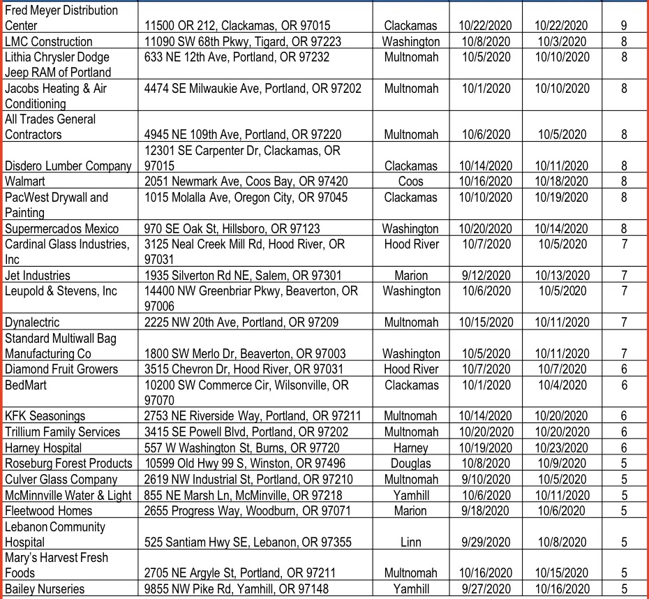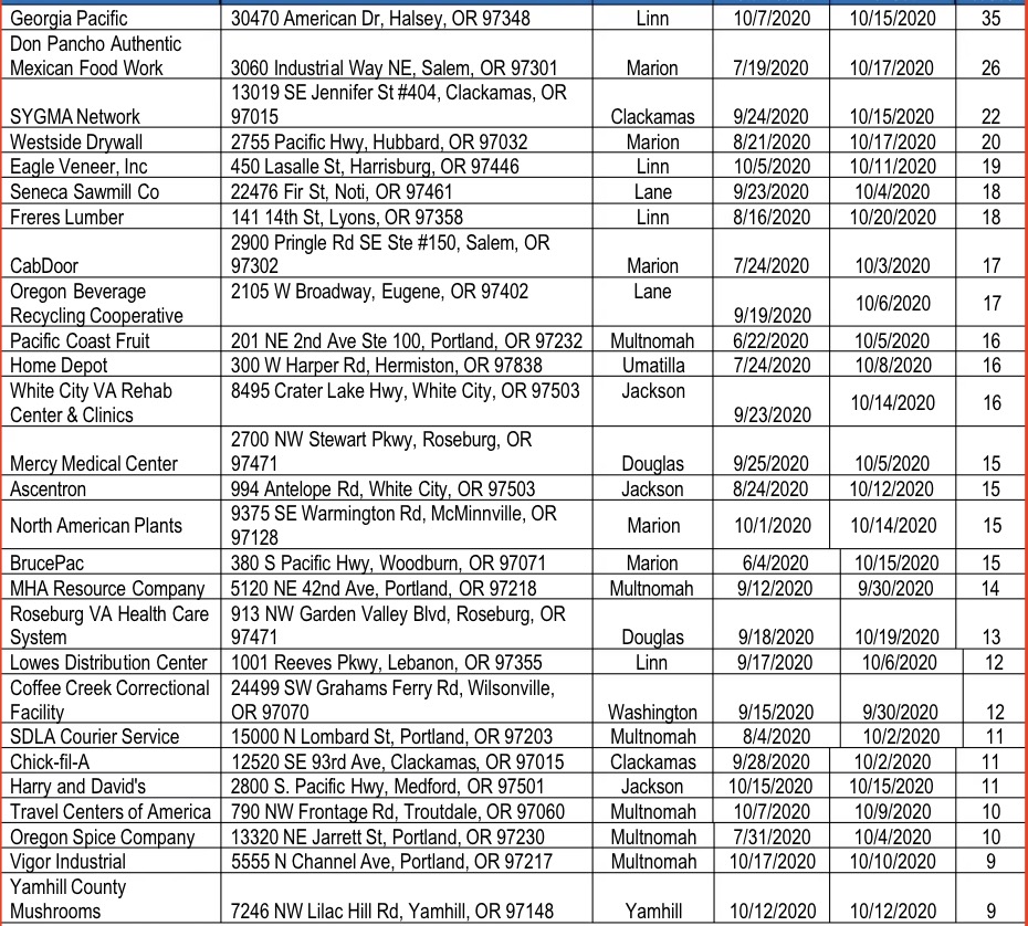 俄勒冈州 全俄勒冈州曝光75个病毒活跃场所 by Malldone2020年10月29日2020年10月29日 截至这个星期,全俄勒冈州至少有75个新冠病毒活跃的工作场所。 这些工作场所至少有30名工人,其中5人或5人以上感染新冠病毒。这些感染者包括场所内的员工或其亲密接触者。 以下是最新的活跃场所列表,收藏好了!没什么特别重要的事就不要去这些地方了! 原文标题:Here are the 75 active workplace outbreaks in Oregon 同类报道或信息来源:kgw.com ShareShare
