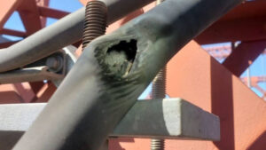 TriMet公司发布的照片显示,给MAX供电的电缆已经被烧了一个大洞。
