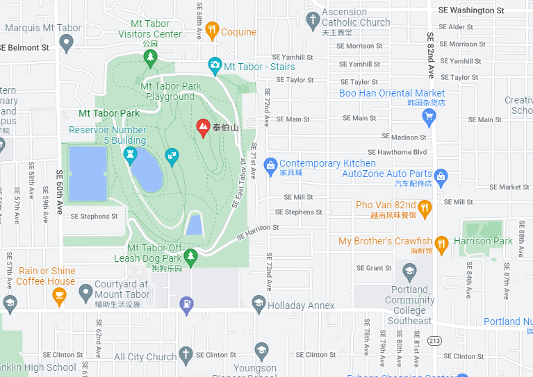 Mt.Tabor(音泽泰伯山;因音相似,台山华人戏称为台山)位于波特兰东南区Divison 68街后面,是波特兰闹市中的一片宁静绿洲,是旅行和休闲的好去处。