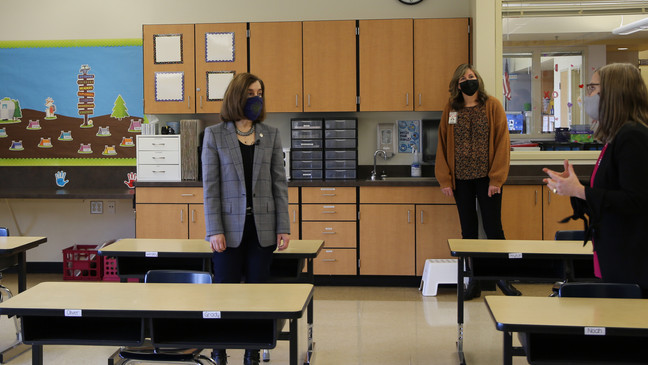 布朗州长说:“俄勒冈州,除了六个县以外,其他所有县都达到或超过了俄勒冈州的开学指标,可以为所有幼儿园至12年级的学生提供亲自面对面上课,和混合上课。”