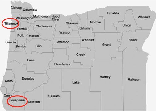 根据俄勒冈州的数据,Tillamook县18岁及以上的人口中有70%接种了疫苗,Josephine县也有53%的接种率。