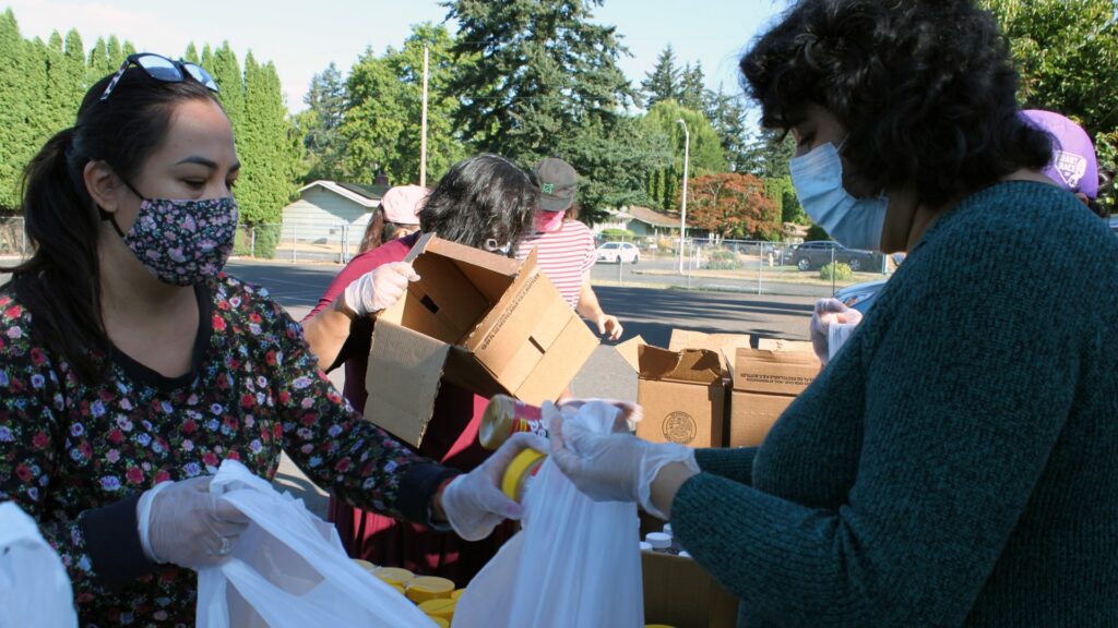 俄勒冈食品银行首席执行官鼓励那些需要食物援助的人访问俄勒冈食品银行的网站( Oregon Food Bank’s website)。在这里,人们可以找到离家最近的食物领取地点。不需要任何身份证明就能得到食物。