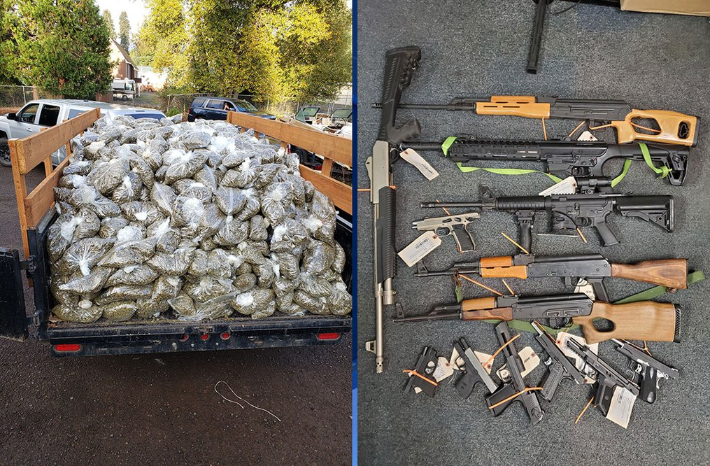 美国俄勒冈州州警察局报告说,在最近的一次缉毒行动中,查获了超过4100磅非法大麻和大量枪支!