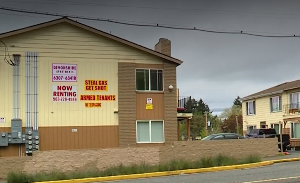在波特兰东北部Devonshire公寓大楼外就挂着带有“偷我油,爆你头”(STEAL GAS GET SHOT)、“武装住户”(ARMED TENANTS)等字样的警告牌。