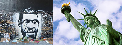 现在,全美国到处都有乔治·弗洛伊德的墙画,比自由女神像还牛B。新一轮的暴乱不止在波特兰,在全美国主要城市都在竞相激情表演。