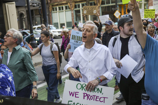 一个星期前的9月28日星期日下午,波特兰市长基思·威尔逊(Keith Wilson)与州长蒂娜·科特克(Tina Kotek)在街头带领市民上街游行,高喊“我们是波特兰人,我们团结强大!”呼吁全州以和平方式捍卫民主与法治。