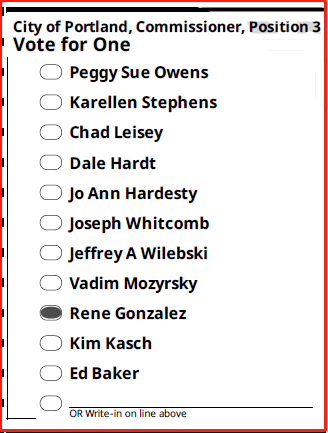 目前为止,雷内·冈萨雷斯(Rene Gonzalez)收到的捐款数第一,民调第一,得到警察工会的支持。他是波特兰女议员乔·安·哈迪斯蒂(Jo Ann Hardesty)最强大挑战者,是“推翻女议员的男人”!