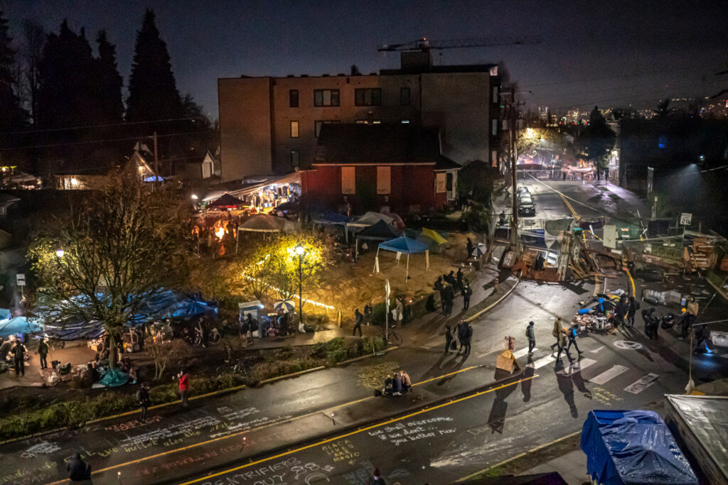 由“黑人生命很重要”支持者和Antifa成员对波特兰北区“红楼”地段的占领已经进入第三天,“占领区”(或“自治区”)的面积变大,路障增多。