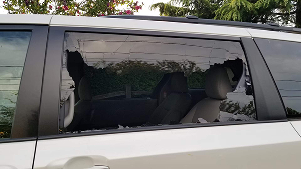 8月9日星期二下午,俄勒冈州波特兰东南区,PCC附近,一华人姐姐停在家门口前的8座车辆无端端被砸烂!