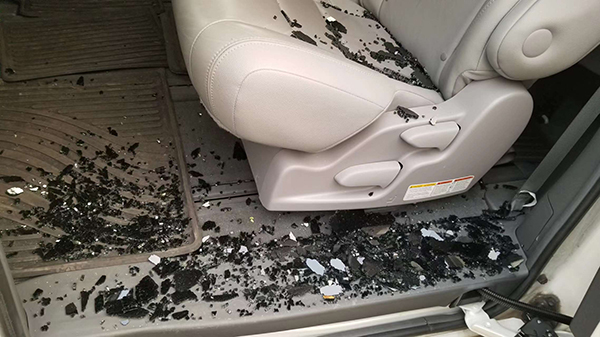 车辆就靠在家门口,不知什么人路过的时候,把车窗玻璃砸了!碎玻璃满地,车里车外都是。