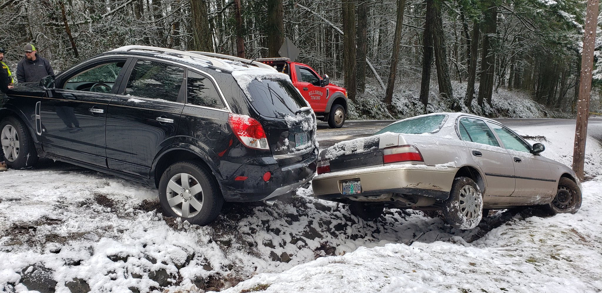 星期日一夜降雪后,12月27日星期一,路面结冰,俄勒冈州事故横出。很多地方都报告了车祸。