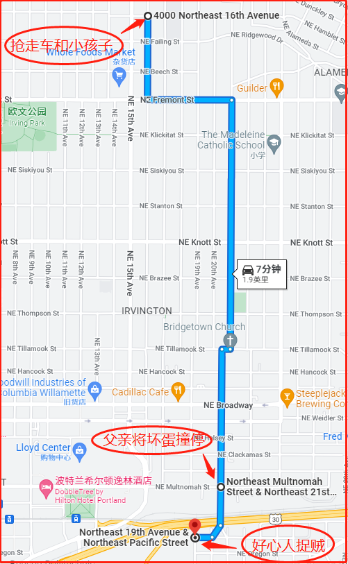 波特兰警察局说,孩子的父亲在东北21大道夹Multnomah街用自己车撞上坏蛋的车(孩子母亲的)!迫使坏蛋下车逃跑!