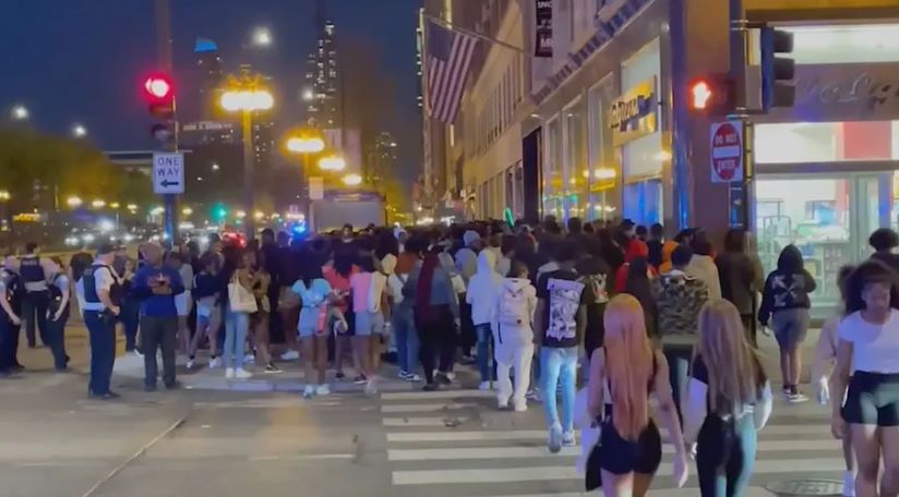 包括FOX等多个媒体报道,星期六晚上,数百名年轻人冲进芝加哥市中心的街道,砸碎车窗、袭击路人,游客在枪声中四处逃跑。