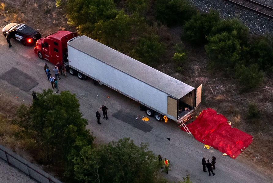 一名执法人员说,大货车非法贩运超过100名无证移民进入美国,车上塞满了尸体。尸体被洒上牛排调味料,表明死亡发生时,车辆没停下来,幸存的无证移民可能长时间和“牛排味”的尸体挤在一起。