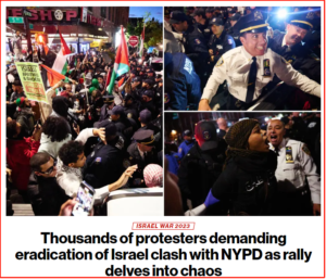 10月21日星期六,纽约邮报报道说,纽约数千名抗议者要求消灭以色列。