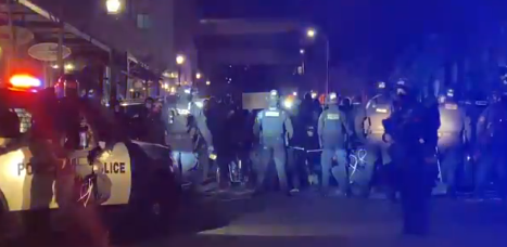 晚上大约9点左右,警察从一开始就紧跟着抗议者!